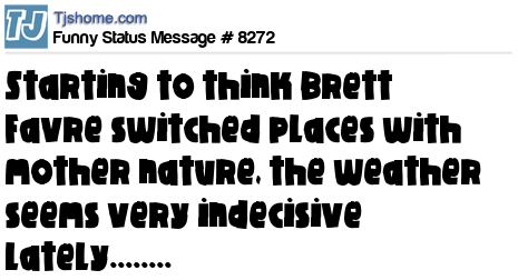 X is starting to think Brett Favre switched places with mother nature, the weather seems very indecisive lately........