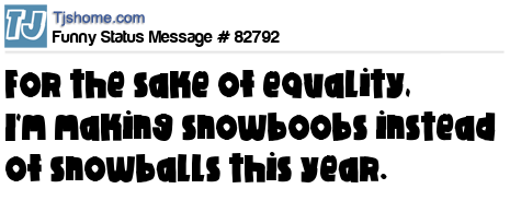 X For the sake of equality, I'm making snowboobs instead of snowballs this year.