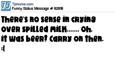 X  There's no sense in crying over spilled milk....... Oh, it was beer? Carry on then. :(