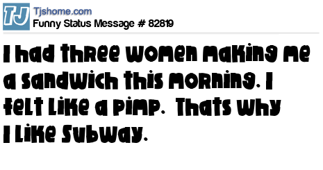 X I had three women making me a sandwich this morning. I felt like a pimp. Thats why I like Subway.