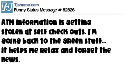 X ATM information is getting stolen at self check outs. I'm going back to the green stuff... it helps me relax and forget the news.