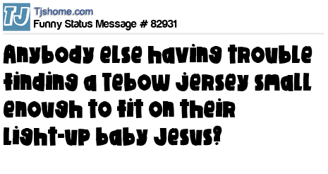 X Anybody else having trouble finding a Tebow jersey small enough to fit on their light-up baby Jesus?