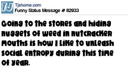 X Going to the stores and hiding nuggets of weed in nutcracker mouths is how I like to unleash social entropy during this time of year.