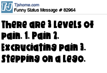 X is There are 3 levels of pain. 1. Pain 2. Excruciating pain 3. Stepping on a Lego.
