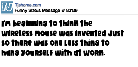 X I'm beginning to think the wireless mouse was invented just so there was one less thing to hang yourself with at work.