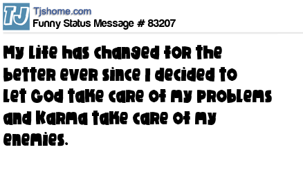 X says My life has changed for the better ever since I decided to let God take care of my problems and Karma take care of my enemies.
