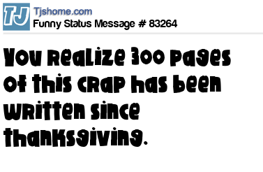 X says You realize 300 pages of this crap has been written since thanksgiving.