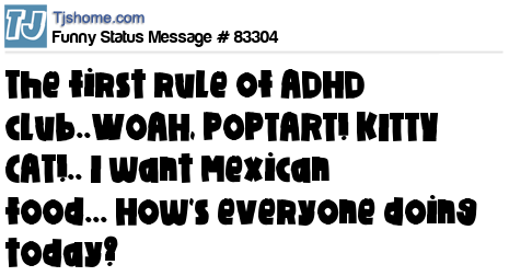 X is The first rule of ADHD club..WOAH, POPTART! KITTY CAT!.. I want Mexican food... How's everyone doing today?