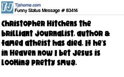 X says Christopher Hitchens the brilliant journalist, author & famed atheist has died. If he's in Heaven now I bet Jesus is looking pretty smug.