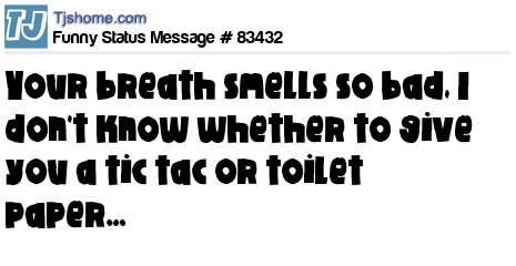 X is Your breath smells so bad, I don't know whether to give you a tic tac or toilet paper…