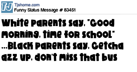 X is White parents say, "Good morning, time for school" ...Black parents say, Getcha azz up, don't miss that bus