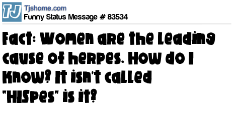 X says Fact: Women are the leading cause of herpes. How do I know? It isn't called "HISpes" is it?