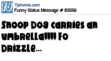- # 12767 why does snoop dogg carry around an umbrella... --fo drizzle!