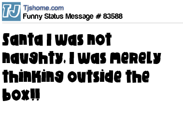 X says Santa I was not naughty, I was merely thinking outside the box!!