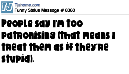 - # 23473 People reckon I'm too patronising (that means I treat them as if they're stupid).