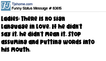 X Ladies: There is no sign language in love. If he didn't say it, he didn't mean it. Stop assuming and putting words into his mouth.