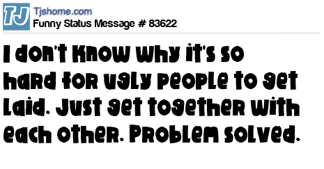 X says I don't know why it's so hard for ugly people to get laid. Just get together with each other. Problem solved.