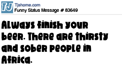 X says Always finish your beer. There are thirsty and sober people in Africa.