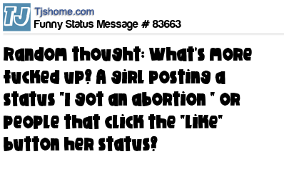 X  Random thought: What's more fucked up? A girl posting a status "I got an abortion " or people that click the "like" button her status?
