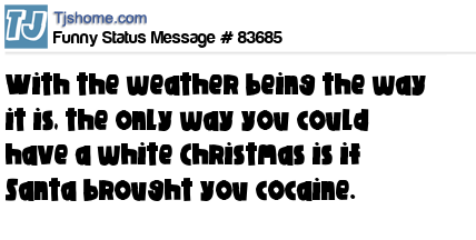 X With the weather being the way it is, the only way you could have a white Christmas is if Santa brought you cocaine.
