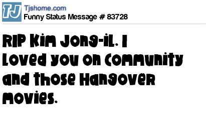 X RIP Kim Jong-il. I loved you on Community and those Hangover movies.