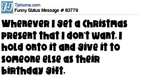 X Whenever I get a Christmas present that I don't want, I hold onto it and give it to someone else as their birthday gift.