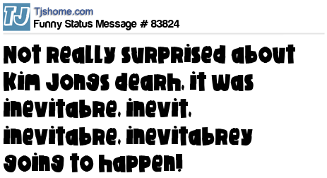X is not really surprised about Kim Jongs dearh, it was inevitabre, inevit, inevitabre, inevitabrey going to happen!