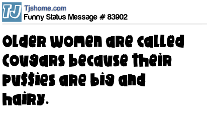 X Older women are called Cougars because their pu$$ies are big and hairy.