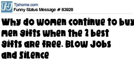 - # 120900 Why do women continue to by men gifts, when the two "best" gifts are free? Blow Jobs and Silence!