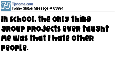 X says In school, the only thing group projects ever taught me was that I hate other people.
