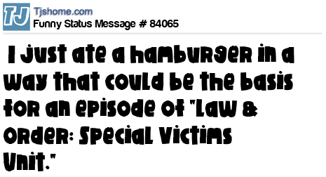 X I just ate a hamburger in a way that could be the basis for an episode of "Law & Order: Special Victims Unit."