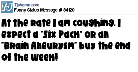 X At the rate I am coughing, I expect a "Six Pack" or an "Brain Aneurysm" buy the end of the week!