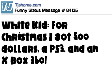 X is White Kid: For Christmas I got 500 dollars, a PS3, and an X Box 360/
