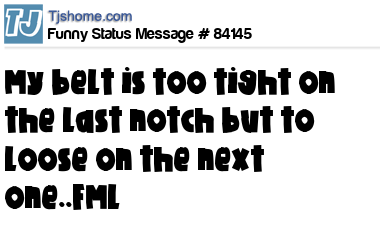X is My belt is too tight on the last notch but to loose on the next one..FML