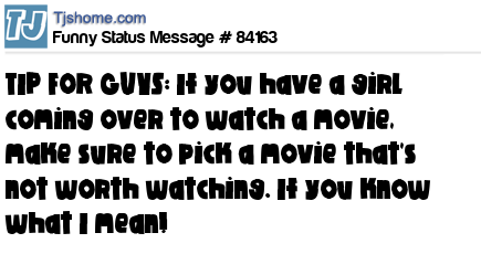 X says TIP FOR GUYS: If you have a girl coming over to watch a movie, make sure to pick a movie that's not worth watching. If you know what I mean!