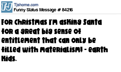 X For Christmas I'm asking Santa for a great big sense of entitlement that can only be filled with materialism! - earth kids.