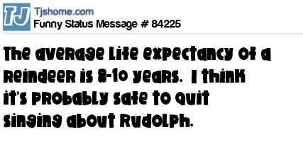 X says The average life expectancy of a reindeer is 8-10 years. I think it's probably safe to quit singing about Rudolph.