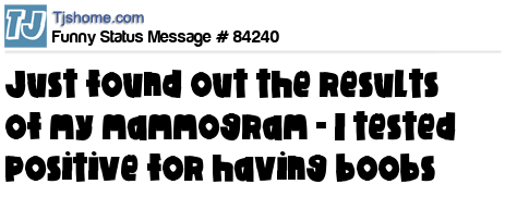 X says Just found out the results of my mammogram - I tested positive for having boobs