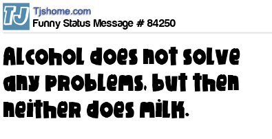 - # 4189 Alcohol doesn't solve any problems, but then again, neither does milk