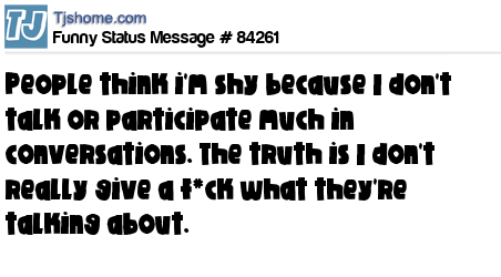 X People think i'm shy because I don't talk or participate much in conversations. The truth is I don't really give a f*ck what they're talking about.