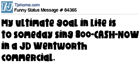 X My ultimate goal in life is to someday sing 800-CASH-NOW in a JD Wentworth commercial.