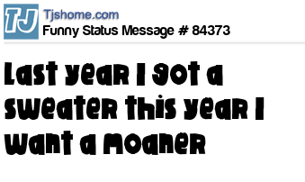 - # 10706 got a sweater for Christmas ... he really wanted a moaner or a screamerÂ