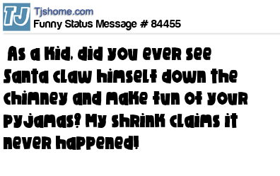 X As a kid, did you ever see Santa claw himself down the chimney and make fun of your pyjamas? My shrink claims it never happened!