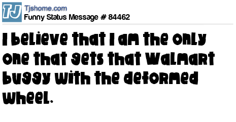 X is I believe that I am the only one that gets that Walmart buggy with the deformed wheel.