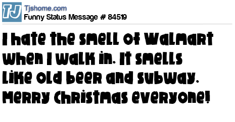 X says I hate the smell of Walmart when I walk in. It smells like old beer and subway. Merry Christmas everyone!