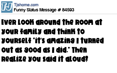 X Ever look around the room at your family and think to yourself "it's amazing I turned out as good as I did." Then realize you said it aloud?
