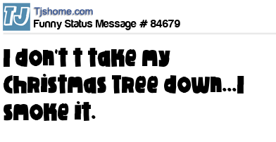 X says I don't t take my Christmas Tree down...I smoke it.