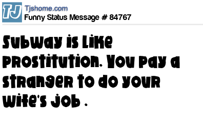 X is Subway is like prostitution. You pay a stranger to do your wife's job .