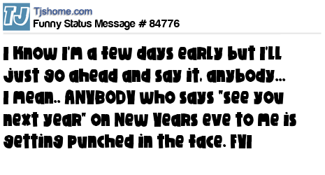 X I know I'm a few days early but I'll just go ahead and say it, anybody... I mean.. ANYBODY who says "see you next year" on New Years eve to me is getting punched in the face. FYI
