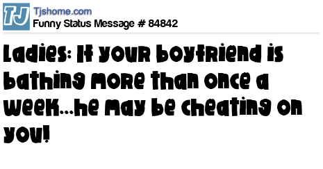 X says Ladies: If your boyfriend is bathing more than once a week...he may be cheating on you!